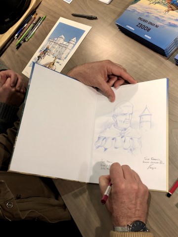 Les visiteurs ont pu repartir avec un ex-libris numéroté et signé par les auteurs offert pour l’occasion. Il représentait les principaux personnages de la bande dessinée avec le château de Montrozier en arrière-plan.